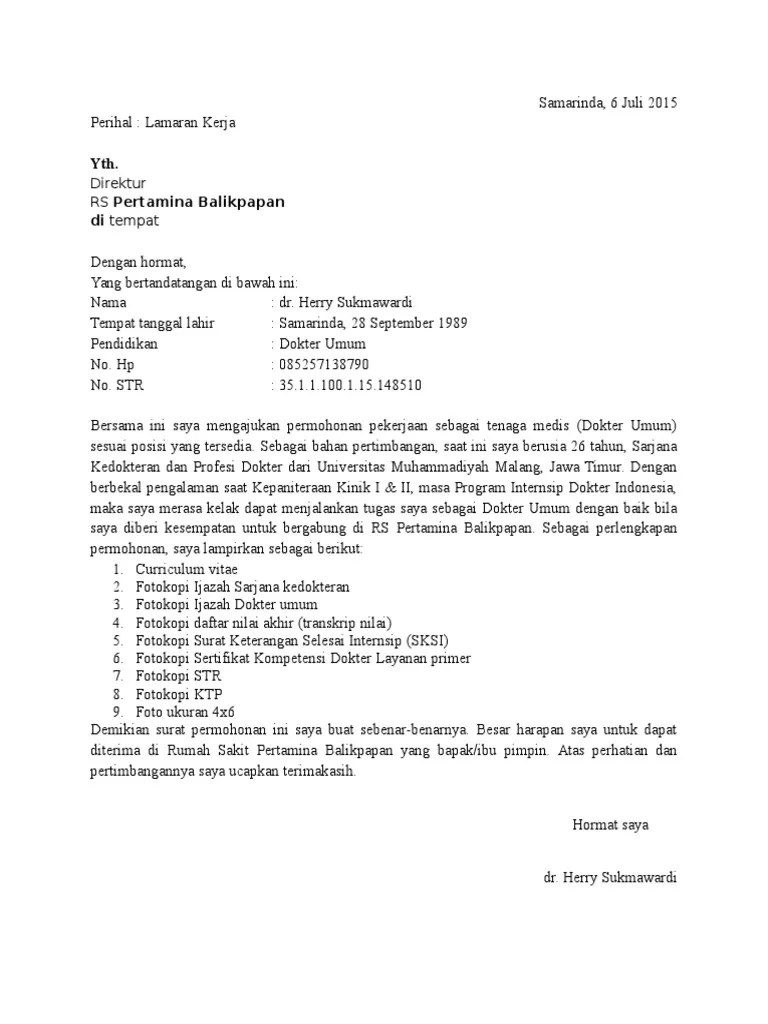 Download Contoh Surat Lamaran Kerja Sebagai Dokter Umum Berbagi from contohsuratlengkap.org Surat lamaran kerja di rumah sakit. Setelah menemukan lowongan yang sesuai dengan keinginan dan kemampuan anda, maka bisa mengirimkan lamaran. Tersedia dalam bahasa indonesia dan bahasa inggris. Contoh surat lamaran pekerjaan di rumah sakit 15. Contoh surat keluar dari rumah sakit. Kerja di rumah sakit tidak harus selalu menjadi dokter, karena rumah sakit memiliki manajemen bisnis yang kompleks. Contoh surat lamaran kerja dan cv on flipboard by bonita benz. Hal ini supaya surat lamaran kerja yang kamu buat bisa menjadi daya tawar dan dilirik perusahaan.