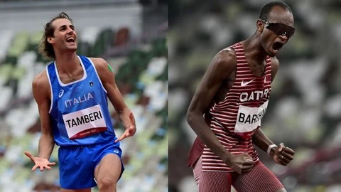 Katarlı mutaz essa barshim ile gianmarco tamberi olimpiyat altın madalyasını paylaştı.